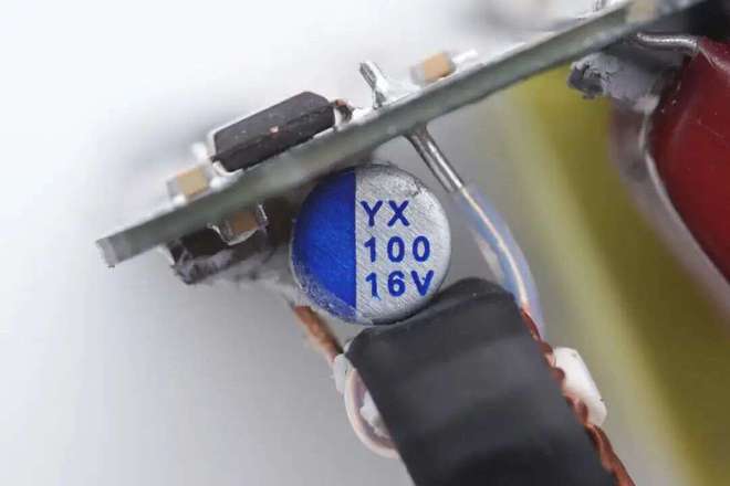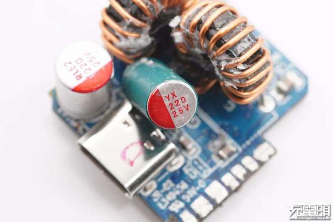 Yunxing low-voltage filtering solid-state capacitor, specification 16V 470 μF. Application case: 1. Disassembly report: Pinsheng Mini 20W 1A1C Fast Charging Charger